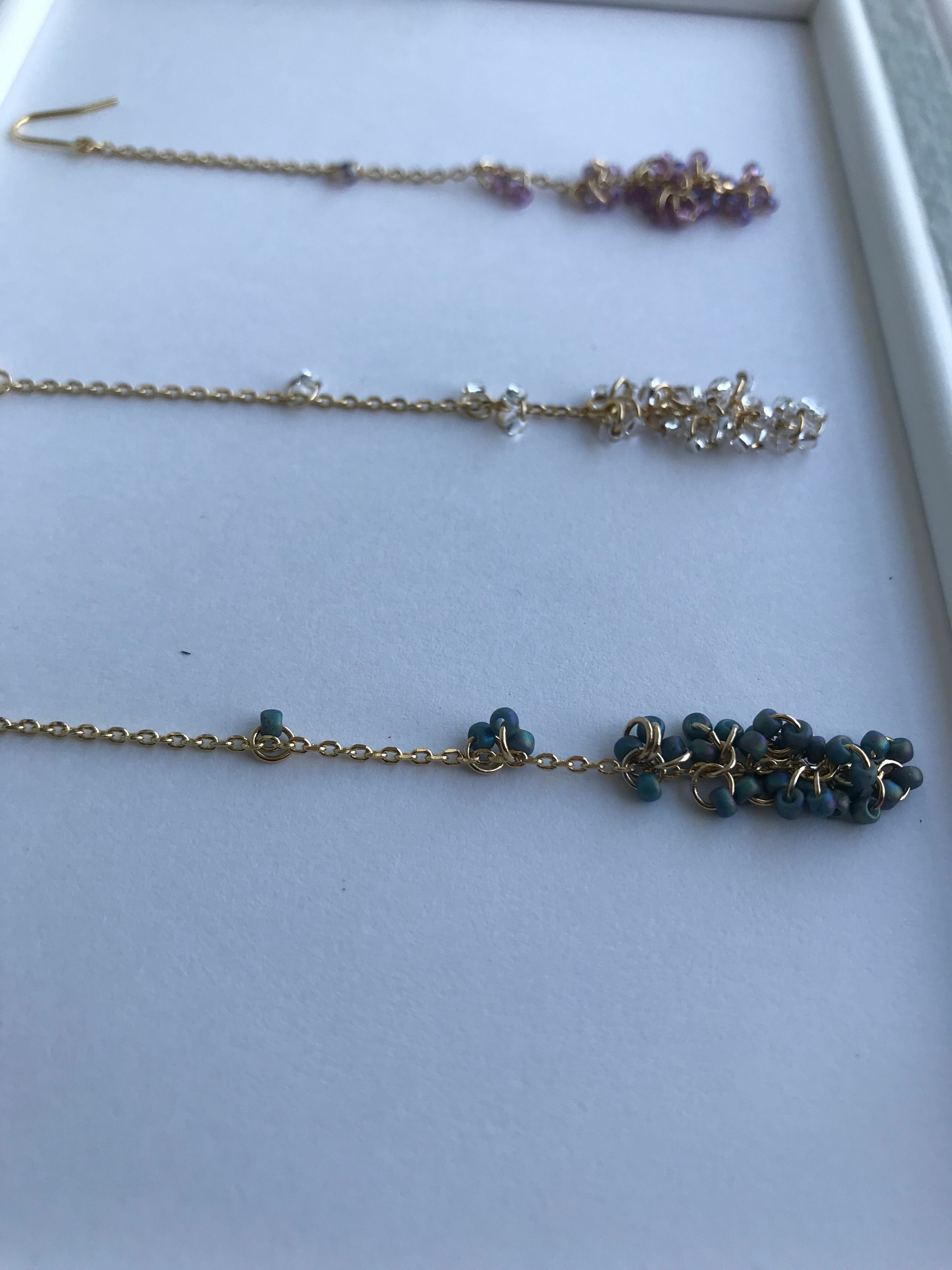 スタッドタイプまたはU字フックのピアスかネジバネ式イヤリングでご用意しております。