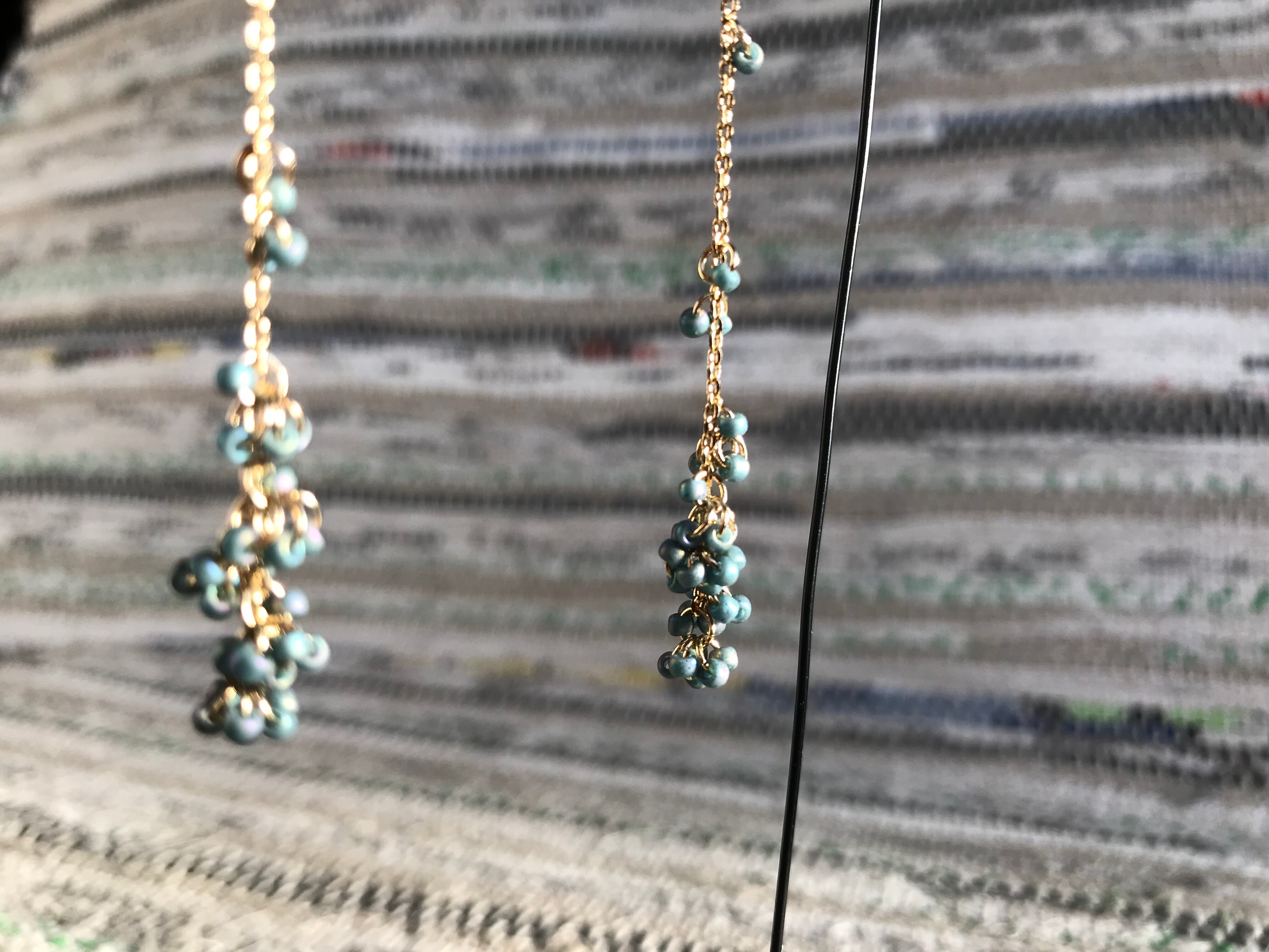 まるでスグリの実を思わせるように、敢えて少し不揃いにビーズを配置した、こだわりの作品です。ありそうでないデザインに仕上がりました。
