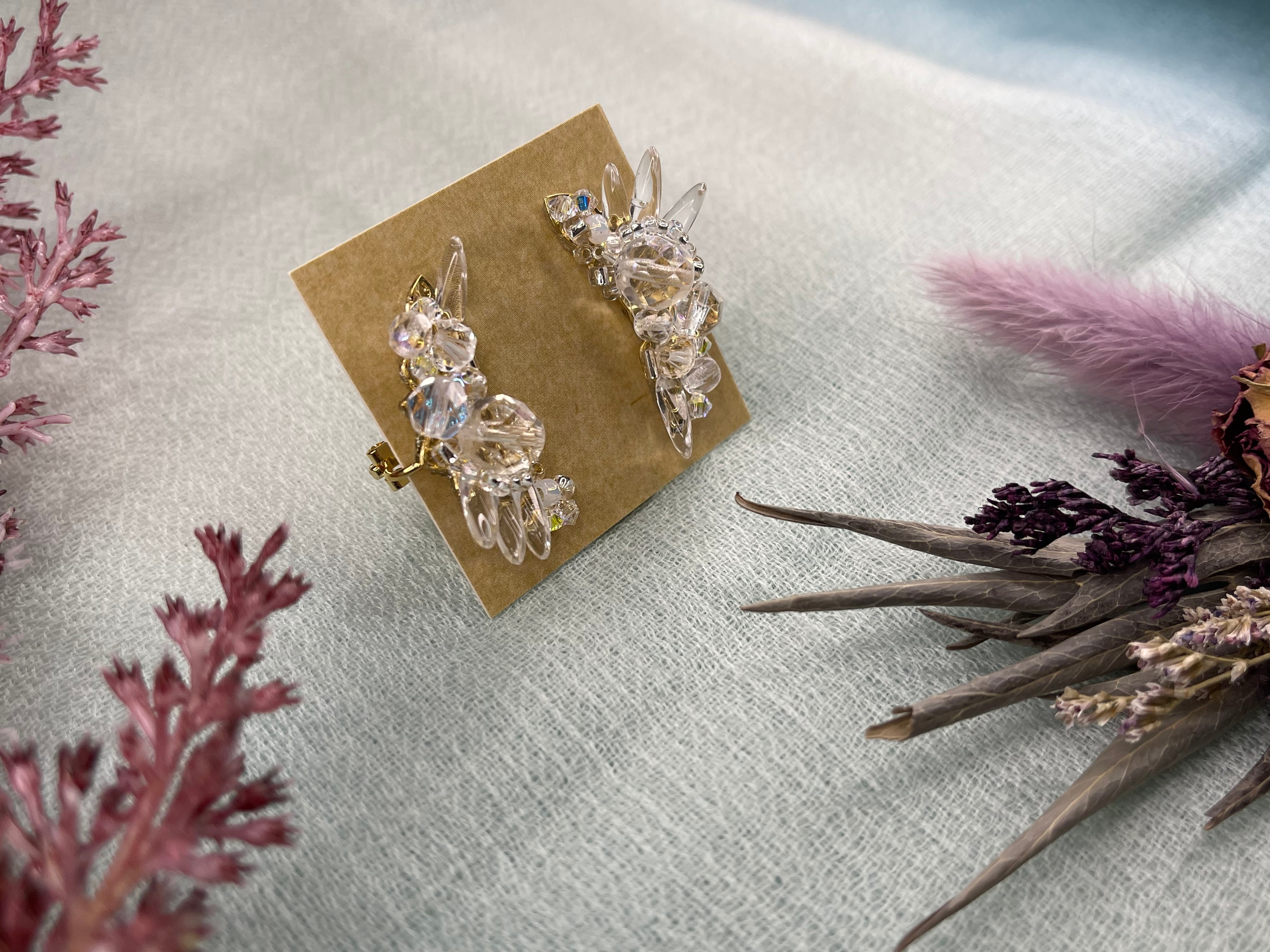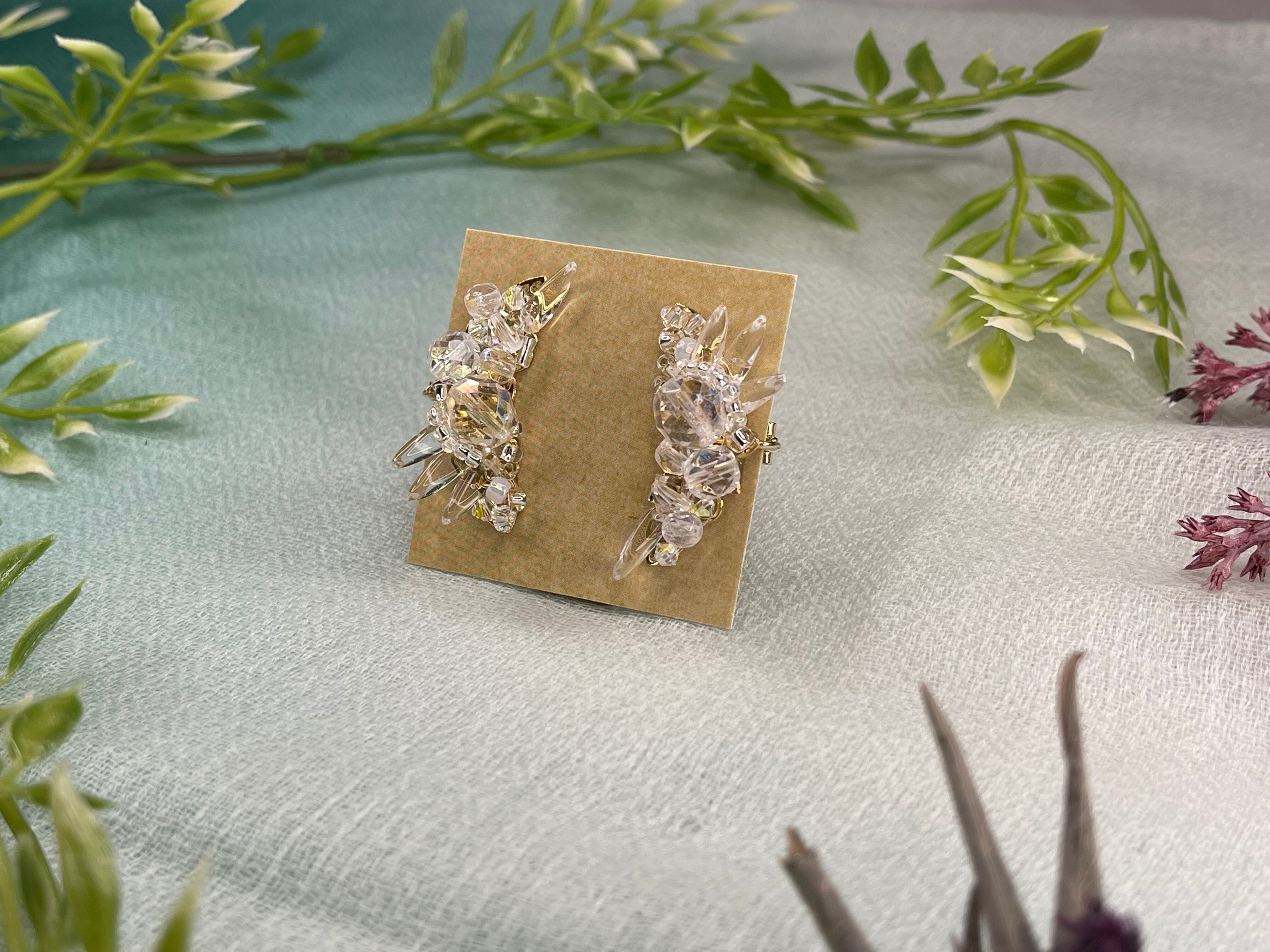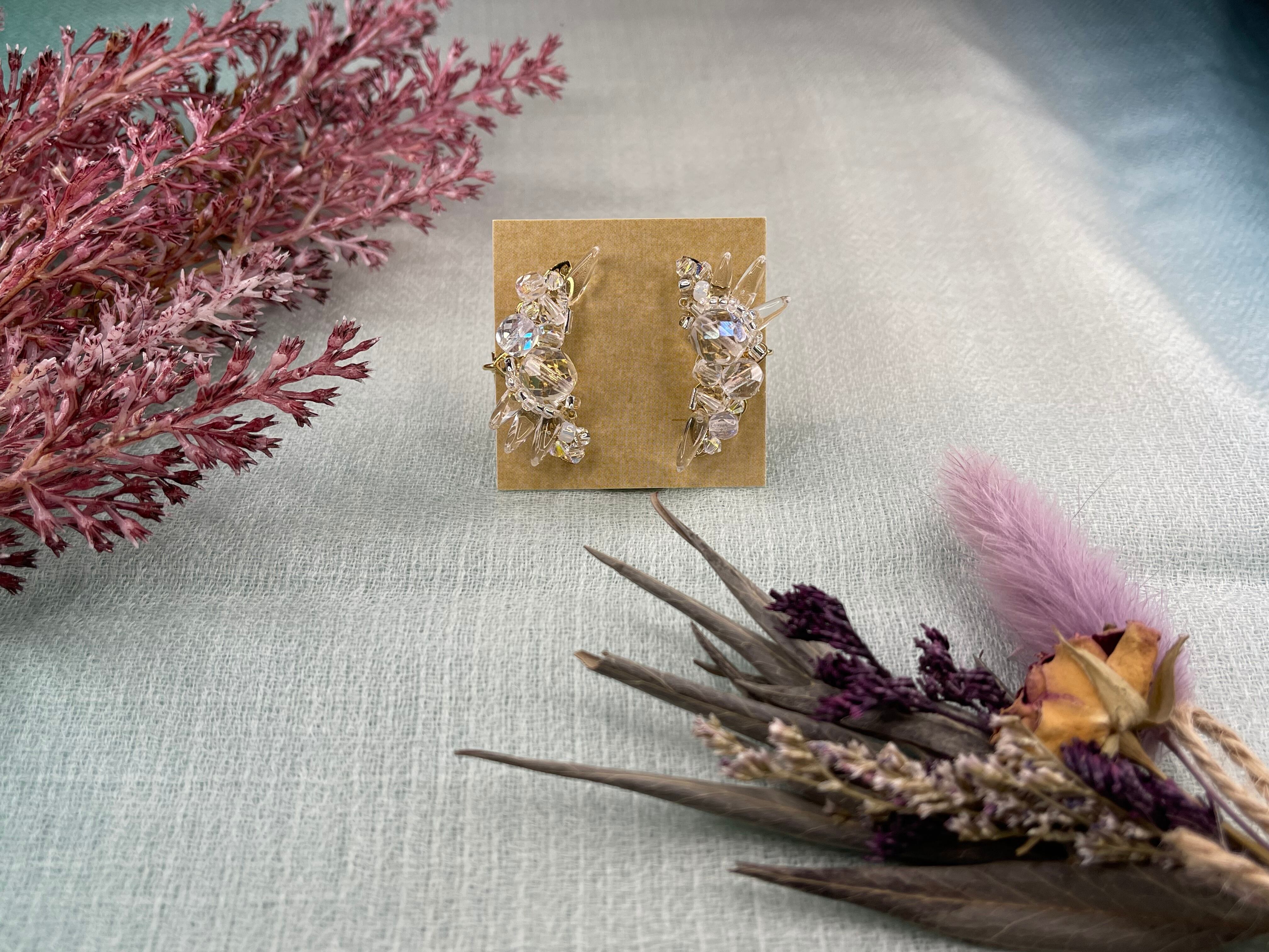 透明感ある氷の美しさを表現した露の糸[透過]のパーツをイヤーカフにしてみました。(露の糸のパーツとはデザインが異なります)