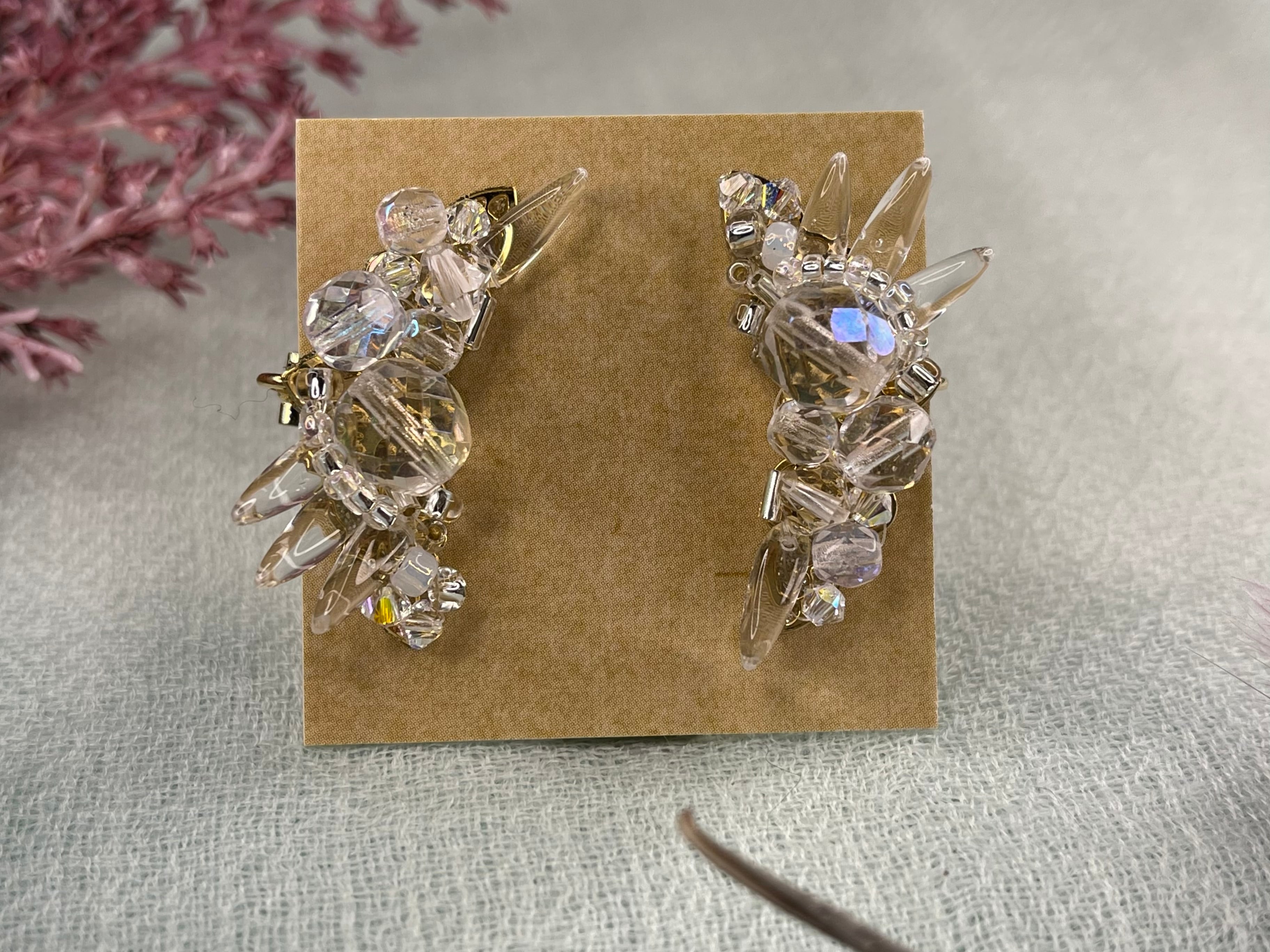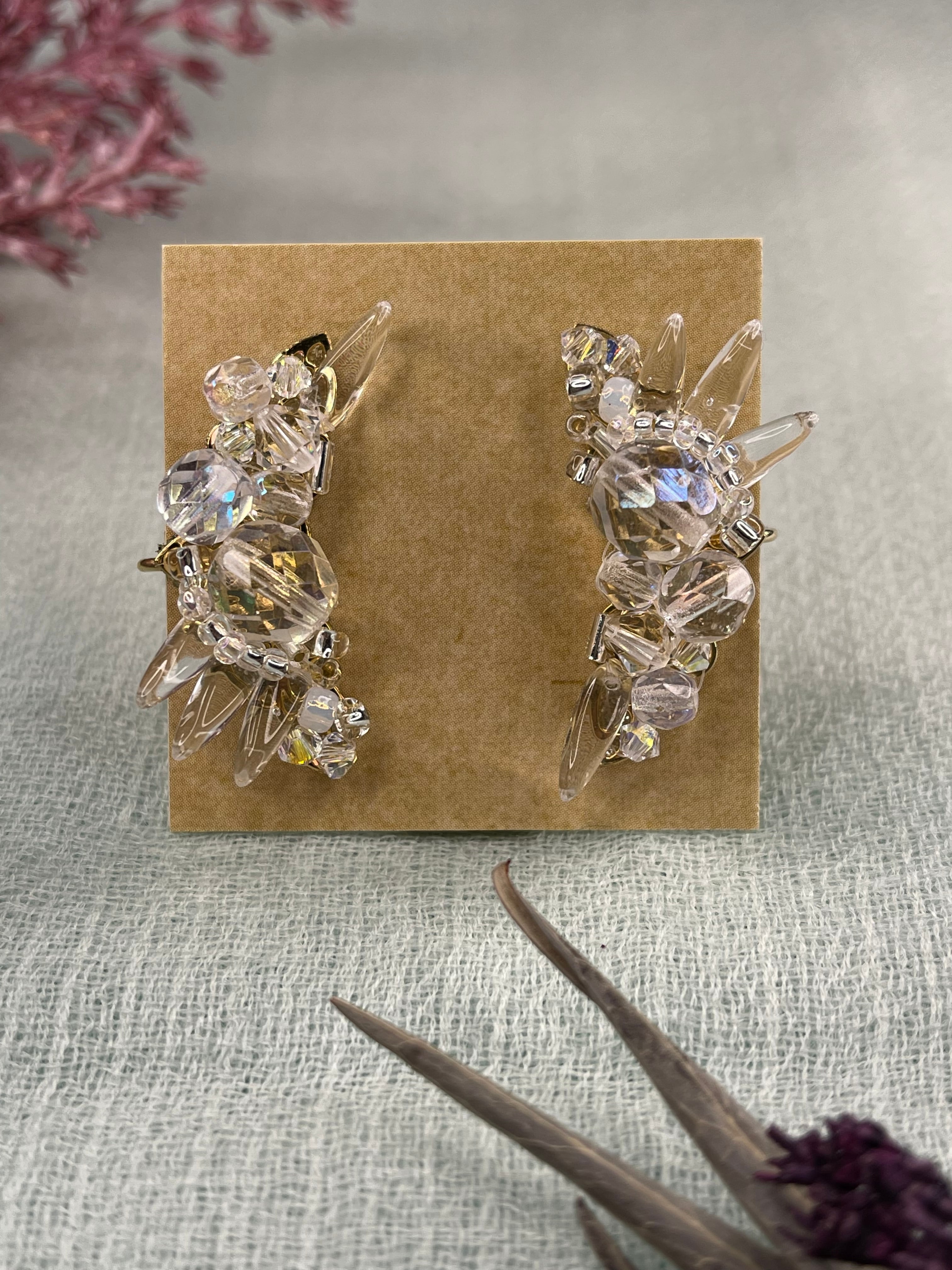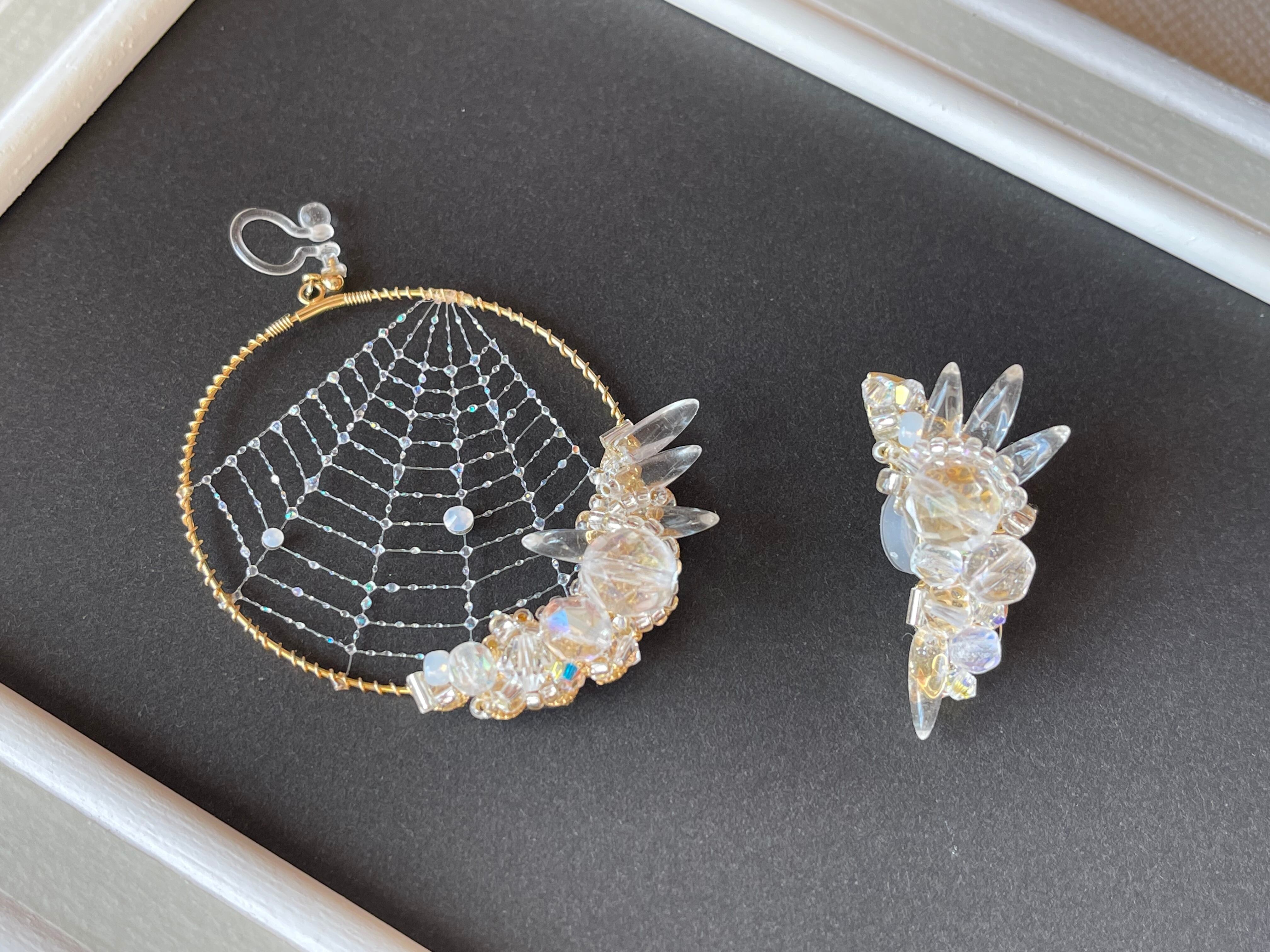 透明感ある氷の美しさを表現した露の糸[透過]のパーツをイヤーカフにしてみました。(露の糸のパーツとはデザインが異なります)